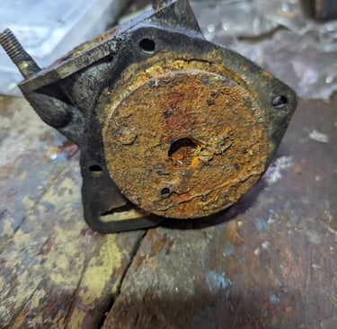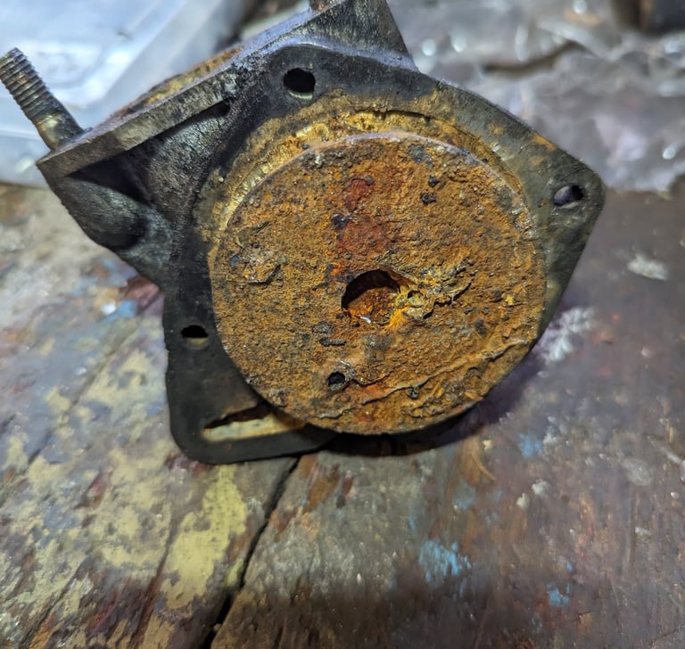 This was quite a fiddly job due to the access available and the age of the nuts and bolts we were removing but this should help the engine as the old pump was dead. The water pump had a lot of movement in it and as you can see the impeller was completely filled with rust. The new water pump I purchased from AE Car Italian Parts came with the studs only and the O ring was not included so it is essential to have the O ring to hand if doing this job.