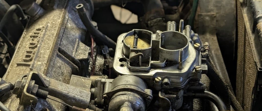 Using a makeshift funnel we poured petrol directly into the carb and then tried to start the car.